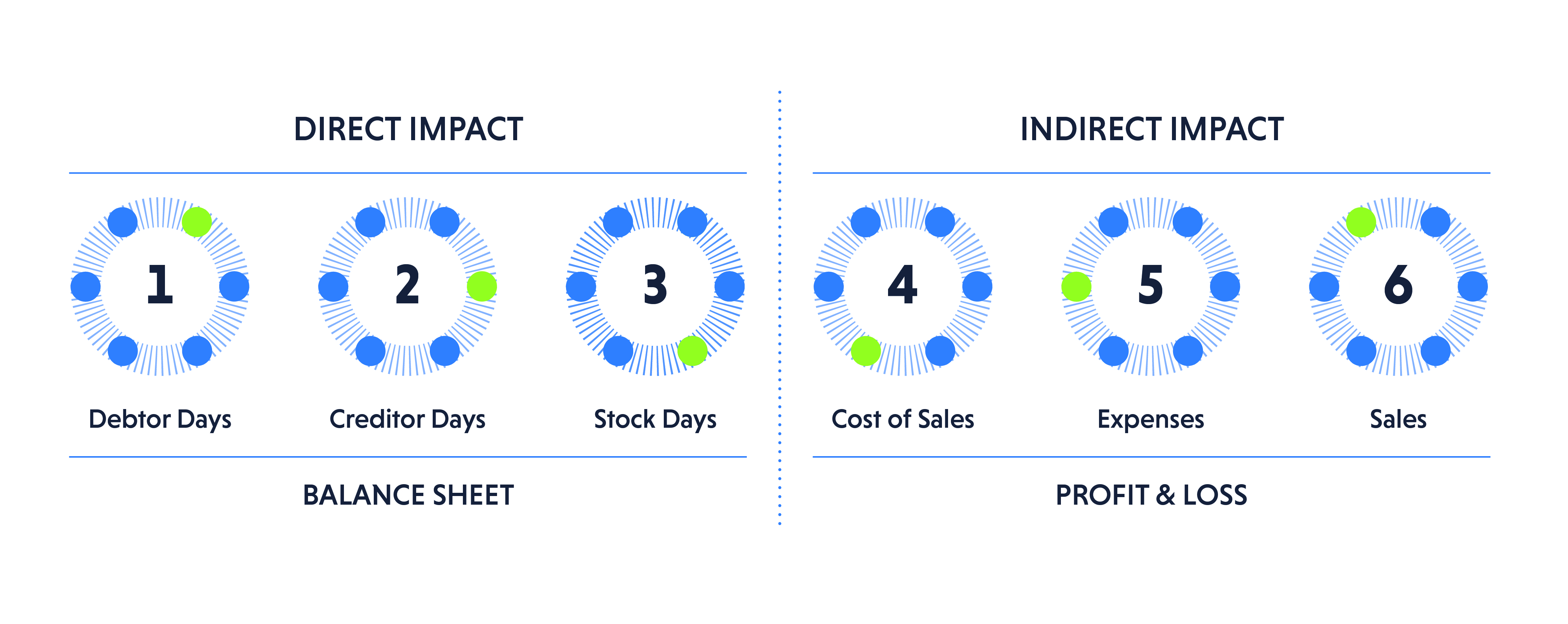 The saying: “Turnover is vanity, Profit is sanity BUT Cash is REALITY” is very true. Therefore we recommend the order in which you make these changes is firstly to your Balance Sheet then to your Profit & Loss Account. Fix any cash leaks first then look to drive the business forward.